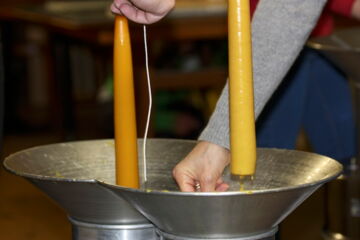 Die Kerzen werden aus Bienenwachs hergestellt. Beim kreativen Gestalten werden Ideen von Jung und Alt miteinander ausgetauscht. Unsere kompetenten und freundlichen Mitarbeiterinnen sind immer für dich da und begleiten dich bei Bedarf von A bis Z! Mit Schulklassen oder beliebigen Gruppen planen wir gerne Termine ausserhalb dieser Öffnungszeiten. Zusammen finden wir immer eine Lösung! Anfragen bei Melitta Schmitz.