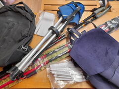 Rucksäcke, Campingsachen und Wanderstöcke